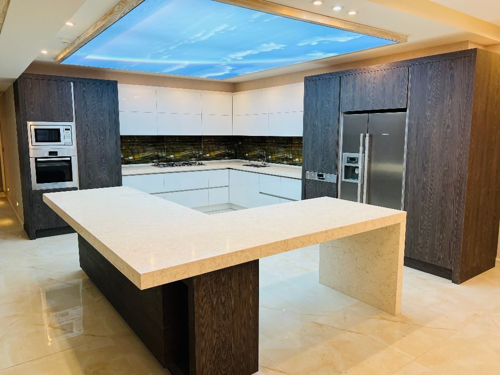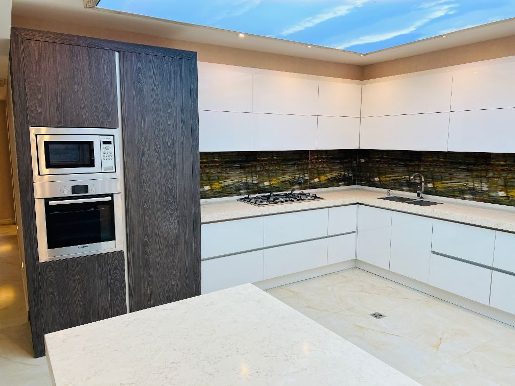 فول فرنیش آشپزخانه ( فر ، مایکروویو ، گاز 5 شعله ، یخچال و فریزر ساید و ماشین ظرف شویی تماما برند بوش آلمان ) |